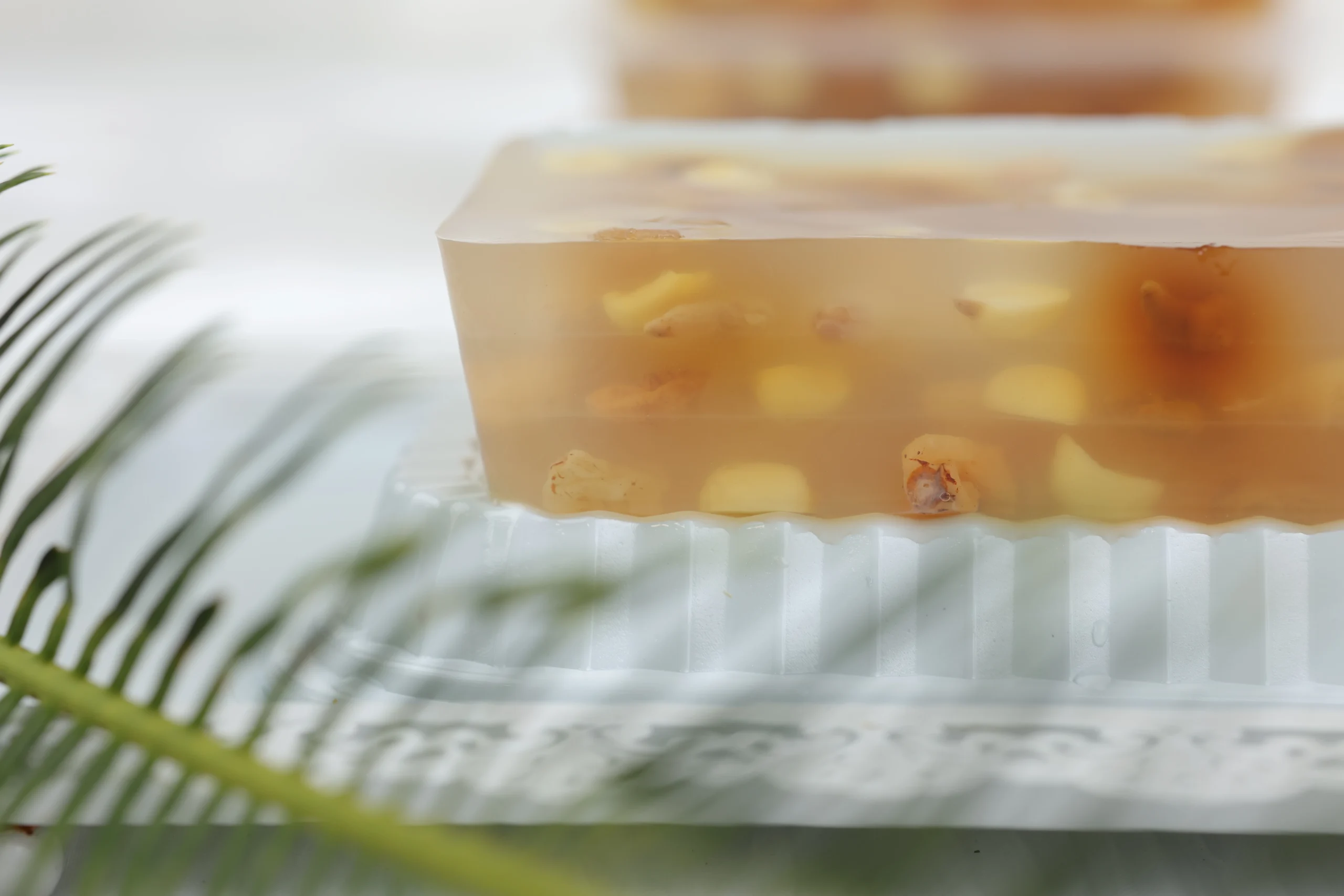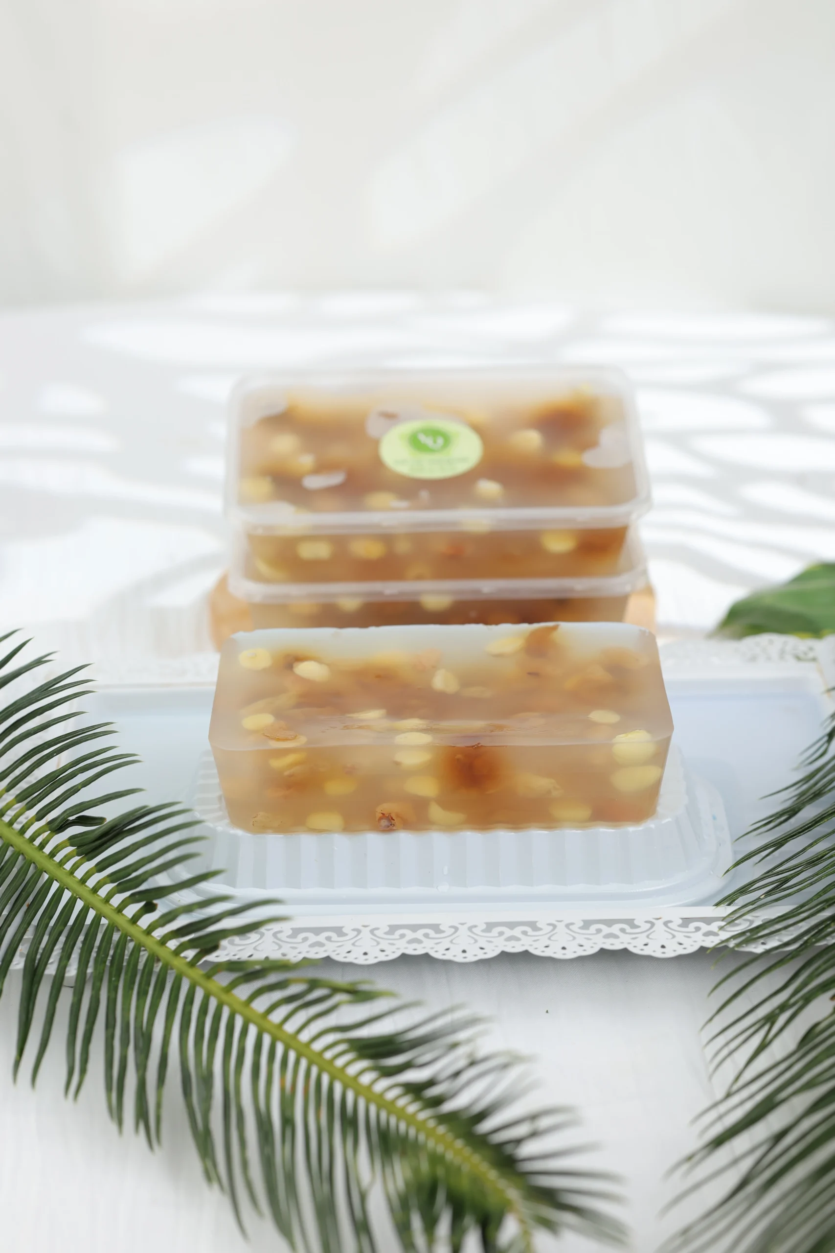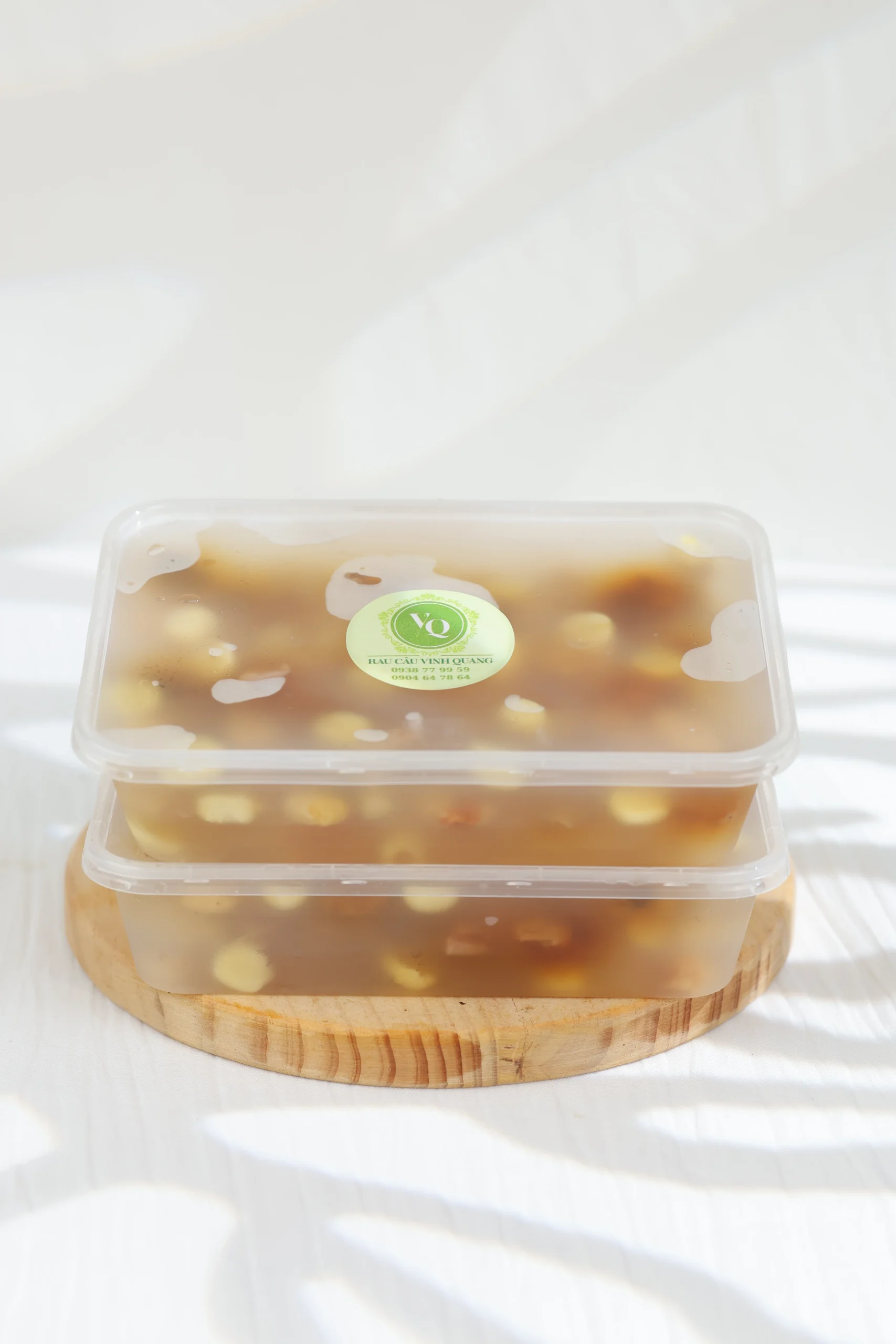 Chúng tôi sử dụng bột rau câu cao cấp, được tuyển chọn kỹ lưỡng, đảm bảo chất lượng để tạo nên lớp thạch mềm mịn, không quá dai cũng không quá lỏng. Rau câu được nấu theo công thức truyền thống kết hợp với nước lọc tinh khiết và các nguyên liệu tự nhiên khác, giúp lớp thạch giữ được màu sắc trong suốt, không chứa phẩm màu công nghiệp, vừa bắt mắt vừa an toàn cho sức khỏe.