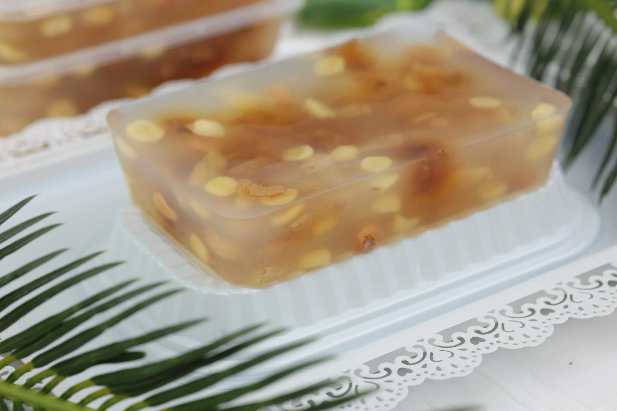 Rau câu hạt sen là một trong những món tráng miệng truyền thống kết hợp sự tinh tế giữa lớp thạch rau câu mềm mịn và những hạt sen bùi thơm, giàu dinh dưỡng. Món ăn không chỉ được yêu thích bởi hương vị thanh đạm, dễ chịu mà còn bởi những lợi ích sức khỏe tuyệt vời mà hạt sen mang lại. Tại Rau Câu Vinh Quang, chúng tôi tự hào khi mang đến cho khách hàng sản phẩm rau câu hạt sen được làm hoàn toàn từ nguyên liệu tự nhiên, không sử dụng phẩm màu, không chất bảo quản độc hại, đảm bảo an toàn và ngon miệng.
