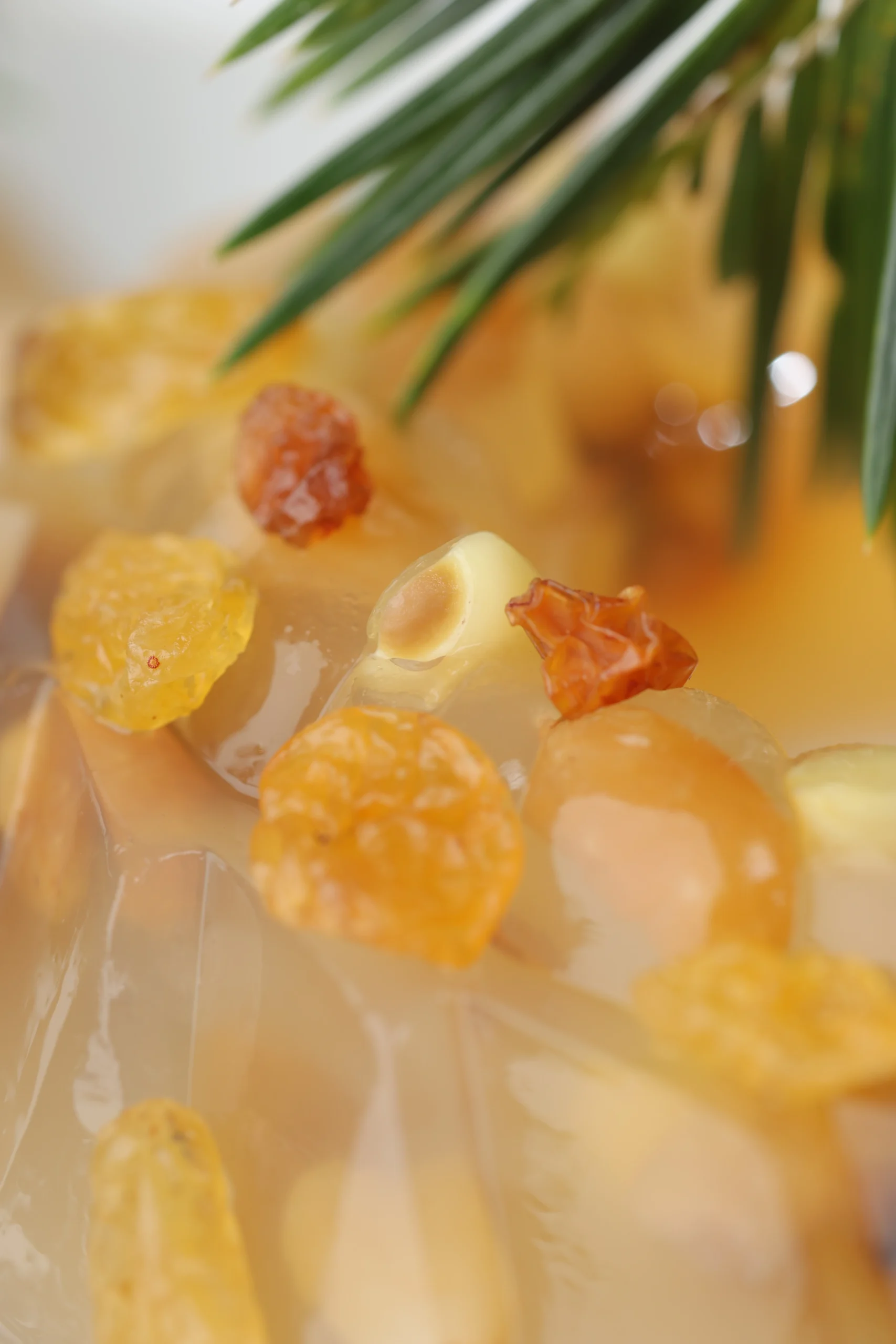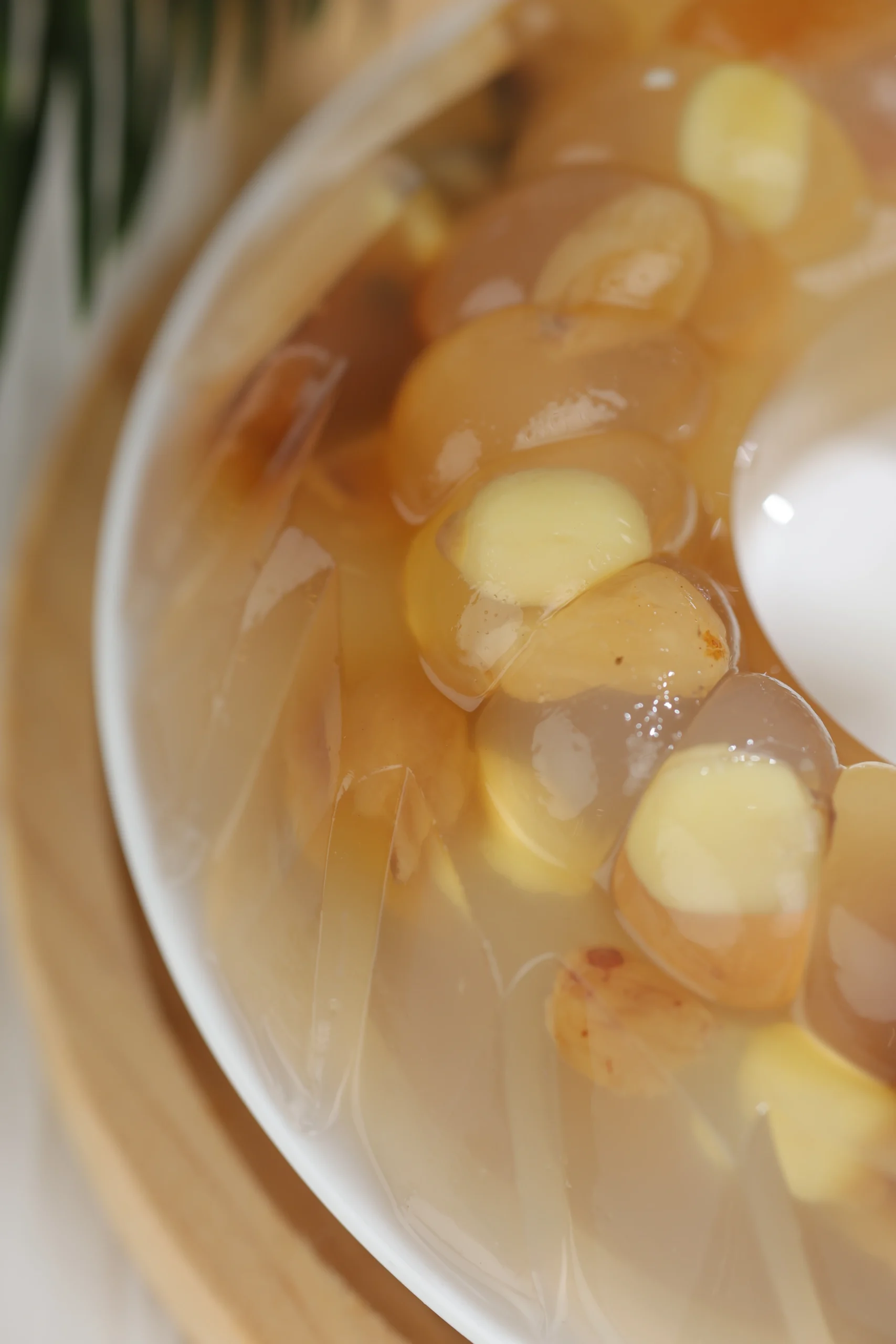 Rau câu hạt sen của Vinh Quang là sự kết hợp hoàn hảo giữa lớp thạch mát lạnh và hạt sen bùi thơm, giúp thanh nhiệt, an thần và bổ dưỡng. Vị ngọt nhẹ, tự nhiên cùng kết cấu mềm mịn tạo nên món tráng miệng thanh tao, phù hợp cho mọi lứa tuổi – đặc biệt tốt cho người lớn tuổi và người ăn chay.
