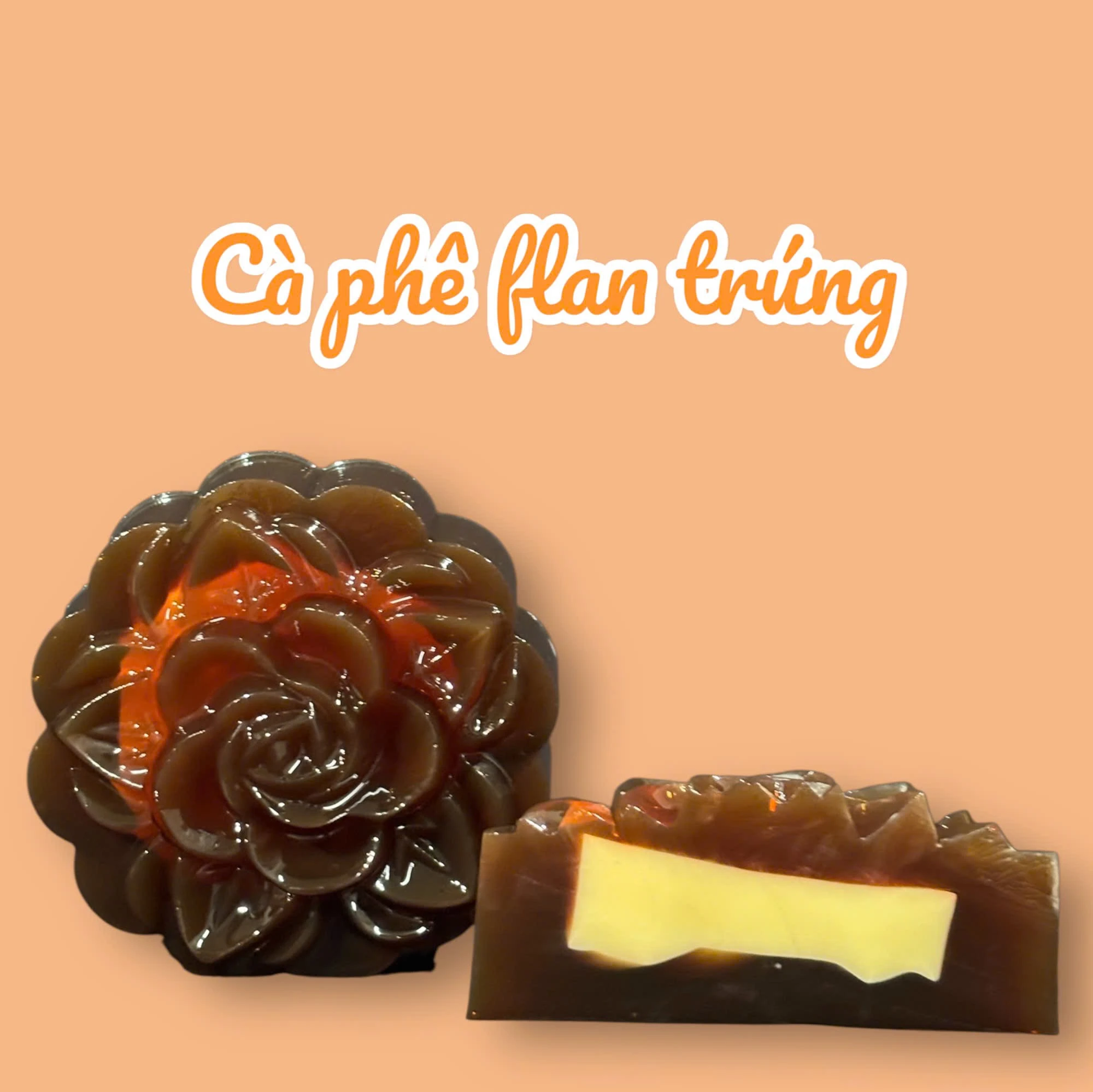Nếu bạn là tín đồ của cà phê và bánh flan thì chắc chắn sẽ “đổ gục” trước Rau câu trung thu Cà Phê Flan Trứng của Vinh Quang.